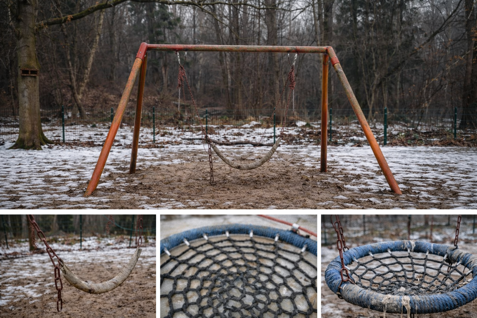 Der bisherige Schaukelkorb musste aus Sicherheitsgründen abgenommen werden, da das Material stark abgenutzt war. Aktuell hängt übergangsweise ein alter Feuerwehrschlauch am Gestell, damit die Kinder überhaupt noch eine Möglichkeit zum Schaukeln haben, doch natürlich kann er das beliebte Nest nicht ersetzen.